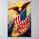 Bald Eagle affiche 4 juillet vient avec un bel aigle à tête volante en l'air tenant sur un drapeau américain avec des rayons de soleil qui brillent sur lui.Voici une belle photo sur cette affiche