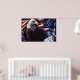 Bald Eagle affiche 4 juillet vient avec une belle Bald Eagle assise et regardant la Statue de la Liberté et un drapeau américain derrière lui. Ceci est une belle photo sur cette affiche