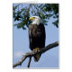 Un aigle à tête blanche mature, perché haut dans un sapin, observant l'océan pour se nourrir.