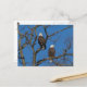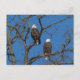 Ein paar erwachsene Glatzenadler, die in einem Baum mit einem hellblauen Himmel im Hintergrund stehen.