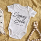 Teilen Sie Ihre glücklichen Neuigkeiten mit Großeltern, Tanten und Onkeln oder speziellen Freunden mit dieser bezaubernden, geschlechtsneutralen Baby Bodysuit-Schwangerschaftsankündigung. Coming Balon ist in einem trendigen und modernen Skript geschrieben. Das Fälligkeitstermin des Babys ist unten beschrieben. Minimalistisches Design schafft ein wahrhaftiges Design. Der gesamte Text ist bearbeitbar, sodass Sie die Schwangerschaftsankündigung wirklich anpassen können, um Ihre persönliche Anzug.