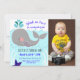 Nautical Sea Whale fête d'anniversaire à thème. Ajustez le texte pour en faire le vôtre. Main Drawn Cute, adorable illustration de baleine. Bleu clair et blanc, rayé arrière - plan composent cette jolie conception d'invitation fête d'anniversaire. Premier anniversaire. Fête de garçon. Bleu clair. Modèle Carte photo personnalisé.