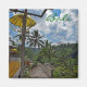 Bali Magnet zeigt hübsche Reisfelder mit Palmen. Dieser balinesische Hintergrund diente als Schauplatz eines berühmten Films über die Reise einer Frau mit Essen, Beten und Liebe.