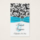 Cette carte mariage damassé Favor en noir et blanc possède un ruban imprimé bleu aqua et un broche à bijoux en diamant IMPRIMÉ qui serait parfait pour un mariage à thème aqua et noir. **REMARQUE, si vous modifiez la taille de la carte, ou si vous modifiez les polices, ou la taille de la police, une partie de la conception et/ou du texte peut être coupée. Tout va s'imprimer comme vous le voyez sur votre écran. Je ne verrai pas les changements que vous faites, et Zazzle ne corrigera rien (fautes de frappe, mauvais alignement, etc.). Le texte est entièrement personnalisable. Si vous avez besoin d'aide pour ce produit, envoyez-moi un courriel AVANT de passer votre commande. Si vous avez besoin d'autres articles correspondants, veuillez envoyer votre demande par courriel à niteowlstudio@gmail.com