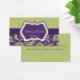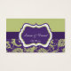 Cette étiquette de faveur mariage damassé violette, blanche et verte correspond au faire-part de mariage ci-dessous.