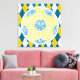 Hier ist ein Fußball-Ball / Fußball typografisches Design in blau und gelb. Das Design wurde aus Fußball-Terminologie und Slang-Wörtern gemacht.