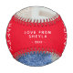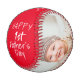 Jour des pères Rouge Script 2 Photo Collage Baseball. Conception sympa pour le nouveau père. Écriture tendance Joyeuse Fête des Pères, message avec nom et année. Ajoutez 2 photos préférées et faites un cadeau sucré pour un nouveau père pour la fête des pères.