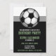 Idéal pour les enfants ! Invitations d'anniversaire tendance et moderne avec un gros ballon de football au sommet, et les détails de la fête en vert et blanc sur noir.