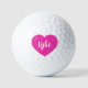 Boules de golf avec une forme de coeur rose avec un nom d'exemple, customisez cet article et changez le nom de l'échantillon à votre nom avec ce modèle. Douze pack