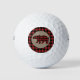 L'arrière - plan sur ce design unique de balle de golf est un motif de plaid de buffle rouge et noir. Au centre se trouve une bannière en cercle bronzé avec une image d'ours en silhouette rouge et noire assortie. Ce design est assorti aux couvertures de tête de golf et autres articles liés au golf dans notre magasin.