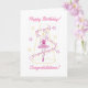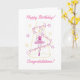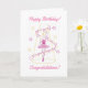 Eine wunderschöne Ballerina Pirouettes im Rampenlicht, mit einer wirbelnden Kette von Bären fällt, während sie sich dreht, mit Sternen funkelt herum! Die Burt trägt die Botschaft Happy Birthday". Wünschen Sie Ihren speziellen Balletttänzer einen wunderbaren Geburtstag mit dieser BallettGeburtstagskarte. Eine Karte voll von Glück, Freude und der Positivität der Welt des Tanzes. Die Farben der Karte sind magenta, rosa und gold. Die Textnachrichten sind anpassbar, sodass Sie sie für Ihre besondere Ballerina personalisieren können, obwohl Sie vielleicht gewollt haben, den Wunsch behalten: "Tanz wie der Stern, den Sie sind!"