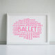 Dieses Ballettwort Cloud/Balletttypografie ist ein perfektes Geschenk für jeden Balletttänzer. Mit mehr als 2 Dutzend Ballettplätzen ist diese Wandkunst eine großartige Ergänzung zum Zimmer Ihrer Tochter und ein perfektes Geschenk zum Tanz. Wenn Sie sich für eine benutzerdefinierte Farbe interessieren, schreiben Sie mir bitte eine E-Mail an susan@susannewberrydesigns.com , um sich über Sonderbestellungen zu informieren.
