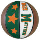 Il s'agit d'un basketball grandeur nature avec deux panneaux conçus avec un nom monogramme (grande première lettre) et un numéro uniforme, dans les couleurs populaires de l'université. Celui-ci est montré en orange, vert et blanc. Le deuxième panneau a des couleurs d'équipe avec trois étoiles. Tout le texte, l'art et les couleurs peuvent être supprimés ou modifiés selon vos besoins. Un panneau peut être laissé blanc pour les autographes, etc.