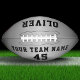 Joueur moderne Silver Metallic Nom d'équipe Football Numéro. L'arrière - plan est une fausse texture métallique argentée. Ce football personnalisé et personnalisé est un cadeau parfait pour un footballeur, coéquipier, entraîneur,... Personnalisez-le avec votre nom d'équipe, votre numéro et votre nom. Un grand souvenir de votre sport favori.