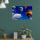 Quatre montgolfières courent dans le ciel bleu. Ajoutez votre propre texte à l'affiche si vous le souhaitez.