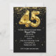 Ballons en mylar or avec étoiles confetti en noir pour la fête du 45ème anniversaire. Le texte peut être modifié pour une invitation de fête d'anniversaire