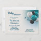 Belle invitation garçon baby shower avec une belle décoration de ballons métalliques.
