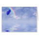 Paar blaue Ballons, die in einem Regenbogenhimmel treiben.