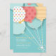 Diese aquamarine Einladung enthält farbenfrohe Ballons in Polka Dot und Stripe Mustern. Eine lustige Party Einladung. <a href='http://www.freepik.com/free-vector/flat-balloon-birthday-card_879905.htm'>Designed by Freepik</a>. <br/>() Die Karte ist einfach zu anpassen mit Ihrem Wortlaut, Schriftart, Schriftart Farbe, Papierform Optionen und Auswahl von sechs Papiertypen.<br/>() Nicht genau das, was Sie suchen? Alle unsere Produkte können auf Ihre Bedürfnisse zugeschnitten werden, ohne Aufpreis.<br/>() Kontaktieren Sie uns einfach unter askcottonlamb@gmail.com<br/>()<br/>Koordinierung der verfügbaren Produkte: Frag uns einfach!