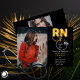 Zwei Foto Collage Landschaft Design Abschluss Ankündigung für einen "RN" mit goldfarbenen Ballonbriefen, einem goldfarbenen Caduceus und einem grauen und silberfarbenen Stethoskop. Composite Design von Holiday Hearts Designs (Rechte vorbehalten).