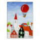 Liebe Mouse schwebt in ihrem Heißluftballon über den Dächern einer Stadt. Fragment von Balloon Mouse & Roofs Gemälde by s t u d i oL e n n A r t.www.studiolennart.com