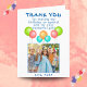 Balloons Kindergeburtstag Foto Danke Karte. Vielen Dank Ballon Geburtstagskarte für die Kinder Geburtstagsparty. Dieses Design kommt mit Ballons in Rot, Blau, Rosa und Grün. Personalisieren Sie die Karte mit dem Namen Ihres Kindes, danke Ihnen Nachricht und Foto.