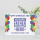 Zeigen Sie die Anerkennung für Papa am Vatertag in diesem Jahr mit einer speziellen Karte. "Husband Pater Protector Held" in blau mit blauen, grünen, gelben und roten Luftballons, die links und rechts auf weißem Hintergrund abrunden. Textdateien, die für Sie erstellt wurden, für die Vorderseite und für die Meldung auf der Rückseite.