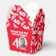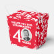 Bright add your own photo and name party favor boxes. Ideal for a special boys 40th birthday party celebration to give you guests and parting thank you gift. Colorful red white design. Other matching items are available. Original graphic art and design by Sarah Trett for www.mylittleeden.com