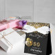 Un arrière - plan noir, décoré de ballons et de faux confettis d'or. Le numéro 50 est écrit avec une police de style ballon tendance, motif léopard. Personnalisez et ajoutez un nom et une date. 50e anniversaire et Merci écrit avec un script de style moderne écrit à la main.