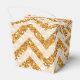 Bonjour et bienvenue. Un élégant motif de chevron "zig zag" en or et blanc brillant avec cadre carré et texte par défaut "Merci Pour partager notre 50e anniversaire Mariage, customisez par vos noms et votre date.