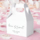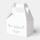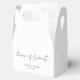 Boîte moderne pour mariage avec un design simple avec "l'amour est doux" dans un script de style rustique avec vos noms et date mariage en noir et blanc. Ces ballotins de mariage élégants avec un agencement minimaliste sont parfaits pour tout style de mariage.