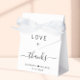 Ballotin blanc mariage chic avec "Love + Thanks" en typographie moderne simple et un script élégant avec des swashes, vos prénoms unis par un coeur et votre date mariage.