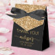 Girly Elegant Moderne Simple Or Parties scintillant Monogramme Nom Signature Script Personnalisé 30ème (ou tout âge) anniversaire Merci Ballotin. Ce design qui met en avant votre prénom dans un joli bloc de parties scintillant de couleur or sur arrière - plan noir. Ces boîtes-cadeaux élégantes et féminines, idéales pour distribuer, cadeaux, cadeaux d'hôtes et friandises lors d'une fête d'anniversaire à venir, 16 ans sucrés, baby shower, douche nuptiale, barbecue, réception de mariage, fête de bachelorette, anniversaire et plus encore.