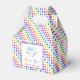 Envoyez vos invités de baby shower à la maison avec ce ballotin personnalisé mignon et coloré, parfait pour vos soirées et événements à thème arc-en-ciel! La boîte est personnalisable, pour modifier le texte cliquez sur "personnaliser ce modèle". Ce ballotin personnalisé est doté d'un arrière - plan motif de pois arc-en-ciel fuzzy et d'une illustration dessinée à la main d'un nuage de tempête avec gouttes de pluie colorées arc-en-ciel. C'est pour un plaisir et une fête de baby shower unique en son genre et rapportez un cadeau à la maison!