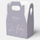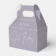 Baby shower simple élégant script moderne girly lilas violet avec design de ballotin motif géométrique.