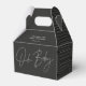Baby shower simple élégant script moderne noir et blanc avec design de ballotin motif géométrique. Conception idéale sans distinction de genre.