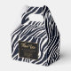 Offrez-vous un côté sauvage avec ce ballotin de bachelorette amusant sur le thème du safari. Doté d'un motif zèbre noir et blanc arrière - plan et cadre doré bordé d'or pour votre texte. ce design exsude le luxe exotique. Le cadre met en évidence "Merci, nous sommes très heureux que vous soyez ici" typographie en lettres dorées brillantes. Entièrement personnalisable pour votre safari ou votre week-end en bachelorette, cette boîte est idéale pour un safari glamour, une jungle ou une fête sur le thème du poster de animal. Cherchez ID1151 pour voir d'autres produits dans ce jeu de design amusant de bachelorette.