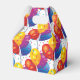 Cette boîte de fête est présentée avec une couleur arrière - plan blanche avec une impression colorée de ballons d'anniversaire festif. Customisez ce sac cadeau ou achetez tel quel.
