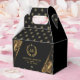 Design élégant, simple, monogrammé étiquette de vin. Couronne de laurier d'or avec un monogramme personnalisable. Le noir et l'or scintillent l'arrière - plan festif.