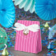Des rayures couleur bonbon et un cupcake décorent ce mignon ballotin. Ce ballotin est idéal pour un baby shower, une fête d'anniversaire, une réception.... Le design est issu de l'art original.