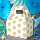 Ce ballotin est montré dans une impression festive de fêtes de Noël de flocons d'or. Customisez cet objet ou achetez tel quel. Image stock