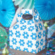 Motif de fleurs comme de la marguerite dans des rangées à travers le produit. La couleur Police est bleue (vous pouvez modifier la couleur Police à votre choix).