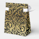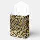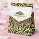 Bâtiment de tour abstrait Art déco noir, ballotin or avec une tour noir et or, motif damassé floral noir et doré et couleur beige/écru solide avec bande dorée. Ce design élégant est une approche moderne d'un style vintage/rétro qui ressemble à celui des années 20 et du Grand Gatsby. Il fait partie d'un ensemble mariage et est entièrement personnalisable.