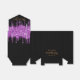 Pour une fête d'anniversaire de 50ème anniversaire (ou de n'importe quel âge). Un arrière - plan noir chic avec des gouttes de parties scintillant violet tendance, la peinture goutte à goutte. Personnalisez et ajoutez un nom et 50 ans. Avec le texte : Merci écrit avec un script de style à la main moderne. Lettres d'or.