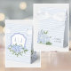 Ce magnifique design présente votre monogramme dans une crête aquarelle peinte avec un ruban et des hydrangées. Utilisez le formulaire modèle pour ajouter vos informations.