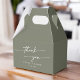 Ces boîtes de bienvenue chic et vert olive boho vous remercient pour votre mariage sont parfaites pour un mariage minimaliste. La tonalité bohème vert foncé bohème moderne est composée d'une calligraphie rustique simple au style unique mais classique. Personnalisez vos ballotins avec vos noms et votre date de mariage.