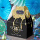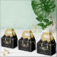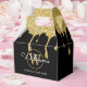 Une boîte de faveur élégante avec des gouttes de paillettes dorées, un nom de script personnalisé, un monogramme et un message.Conçu par Thisisnotme©