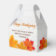 Cette élégante boîte de faveur de fête de Thanksgiving d'entreprise moderne dispose d'une belle ligne de feuilles d'automne sur un arrière - plan en bois blanc. Personnalisez avec vos informations d'entreprise sur le devant en orange et marron pour un cadeau de vacances classe à envoyer aux clients. Customisez avec votre entreprise et votre message personnalisé.
