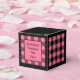 Boîte de faveur à carreaux buffalo rose et noir classique. Le texte des deux côtés de la boîte est personnalisable. Si vous utilisez le bouton / outil 'modifier la conception', vous pouvez également ajouter vos propres images / photos. D'autres coloris sont disponibles.