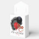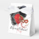 Tente blanche avec ballotin en ruban blanc avec une image de cabaret, à l'avant et à l'arrière, d'un ventilateur en plumes noires, ballon rouge et noir, masque rouge. Texte facultatif. Nous suggérons de changer le ruban blanc en satin rouge ou noir pour un look plus complémentaire. Voir invitation correspondante, confetti, sac de faveur, étiquette de faveur, sacs cadeaux, autocollant rond, autocollant vinyle taillé sur mesure et papier d'emballage. Voir l'ensemble de la collection de Ballotins canadiens dans les TOUCHES SPÉCIALES | Section Favoris.